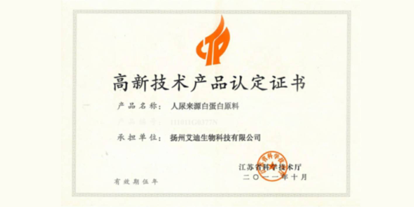 • 人尿激肽原酶粗制品获得2014年江苏省高新技术产品认定